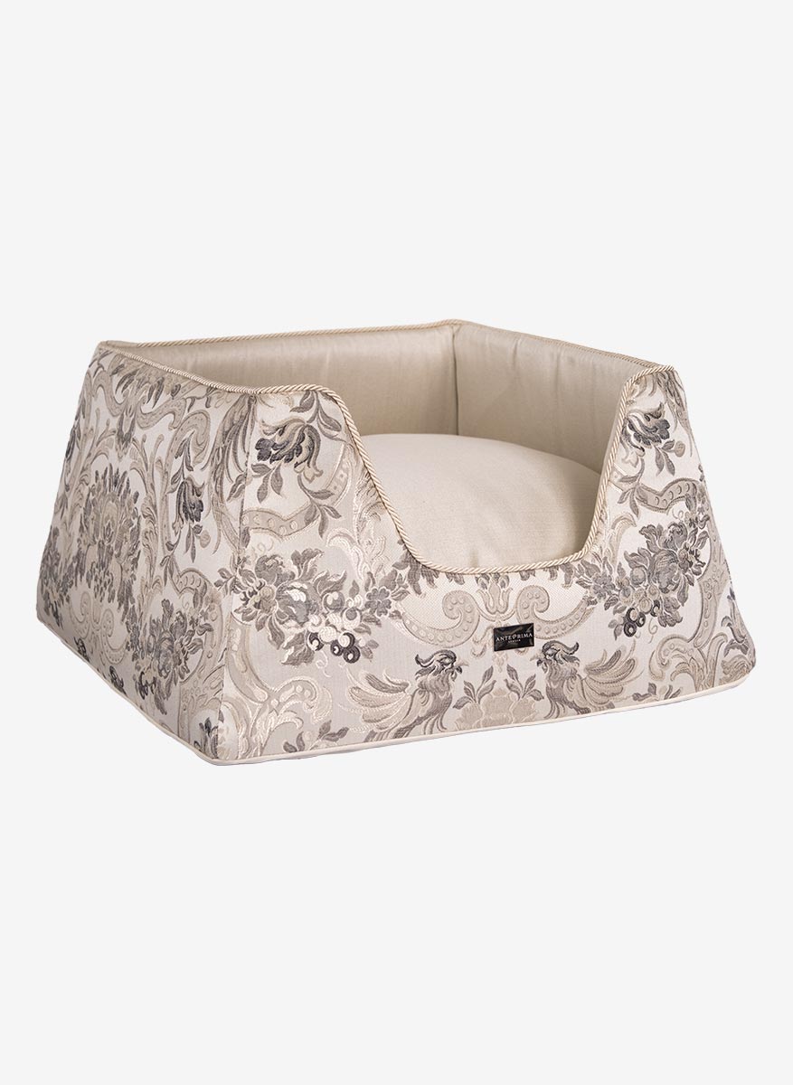 The luxury dog bed Venezia is a testament to timeless elegance and durability. Crafted with meticulous attention to detail, every aspect of this bed, from the selection of hypoallergenic materials to the precision of craftsmanship, ensures a superior luxury experience for your beloved pet. The distinguished metal “AntePrima” label proudly positioned at the front serves as a symbol of authenticity and quality, reflecting the Italian origin and artisanal excellence that characterize each individual bed. Beyond being a simple pet accessory, this bed is a true furnishing complement, seamlessly integrating into your prestigious home environment and adding a touch of individuality with its unique variations resulting from artisanal craftsmanship. By offering this bed to your loyal friend, you’re not just providing them with a place to rest; you’re gifting them an authentic symbol of love and care, perfectly aligned with your refined lifestyle. Every meticulous detail of this bed, including its complete removable cover for easy maintenance, contributes to its functionality and aesthetic appeal. The interior of the damask dog bed, meticulously lined with 100% cotton, offers a fresh and healthy resting environment, enveloping your pet in a comforting embrace of softness and comfort.