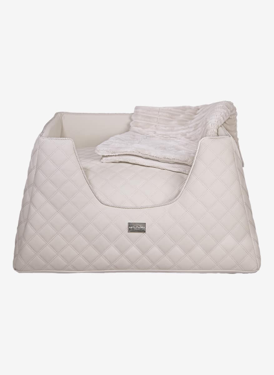 This faux leather dog bed showcases the finest eco leather with a diamond quilted pattern, ensuring both elegance and structural integrity. Its careful selection reflects not only value but also durability, offering enduring comfort for your cherished companion. Crafted with meticulous attention to detail, this bed represents more than just a functional accessory; it embodies a commitment to luxury and sophistication. Adorned with the prestigious «AntePrima» label, each piece is a testament to Italian craftsmanship, imbued with a sense of authenticity and tradition. Beyond its aesthetic appeal, this bed prioritizes practicality, boasting a removable cover for easy maintenance. The interior, luxuriously lined with 100% cotton, ensures a cozy and hygienic resting environment for your pet. This exquisite fabric, chosen for its purity and strength, guarantees both comfort and longevity. With its perfect fusion of luxury materials and thoughtful design, this luxury dog bed stands as an essential element for discerning pet owners seeking the utmost in quality and sophistication for their furry companions, without compromising on convenience or style in their living space.