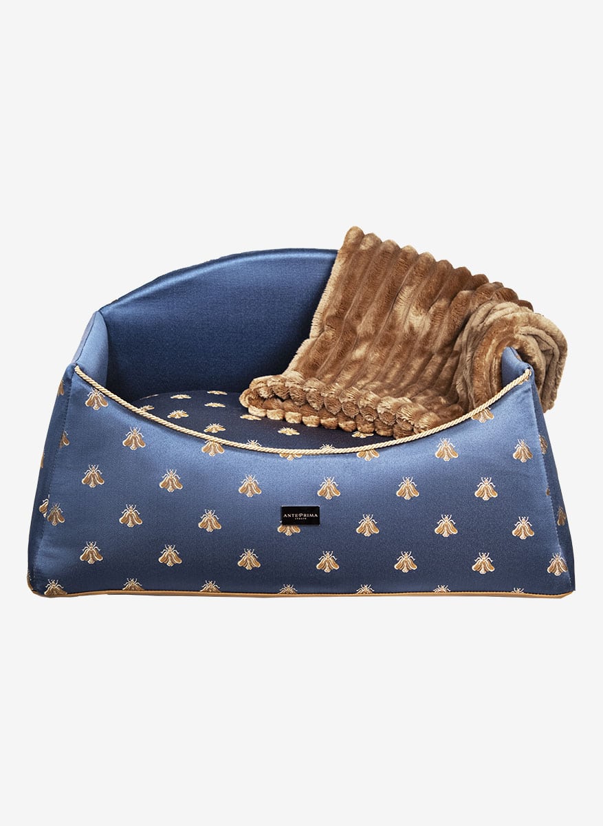 The luxury dog bed Siena is a testament to timeless elegance and durability. Crafted with meticulous attention to detail, every aspect of this bed, from the selection of hypoallergenic materials to the precision of craftsmanship, ensures a superior luxury experience for your beloved pet. The distinguished metal “AntePrima” label proudly positioned at the front serves as a symbol of authenticity and quality, reflecting the Italian origin and artisanal excellence that characterize each individual bed. Beyond being a simple pet accessory, this bed is a true furnishing complement, seamlessly integrating into your prestigious home environment and adding a touch of individuality with its unique variations resulting from artisanal craftsmanship. By offering this bed to your loyal friend, you’re not just providing them with a place to rest; you’re gifting them an authentic symbol of love and care, perfectly aligned with your refined lifestyle. Every meticulous detail of this bed, including its complete removable cover for easy maintenance, contributes to its functionality and aesthetic appeal. The interior of the damask dog bed, meticulously lined with 100% cotton, offers a fresh and healthy resting environment, enveloping your pet in a comforting embrace of softness and comfort.