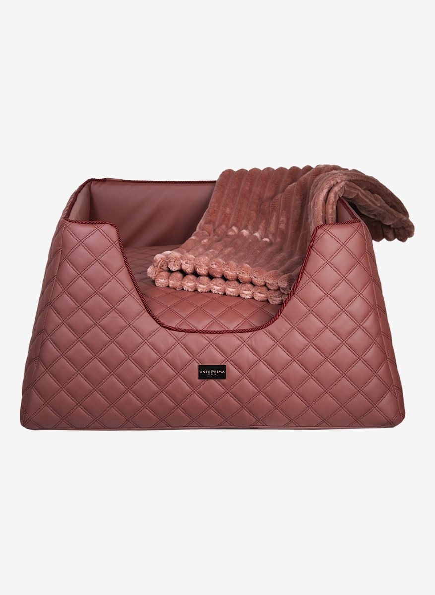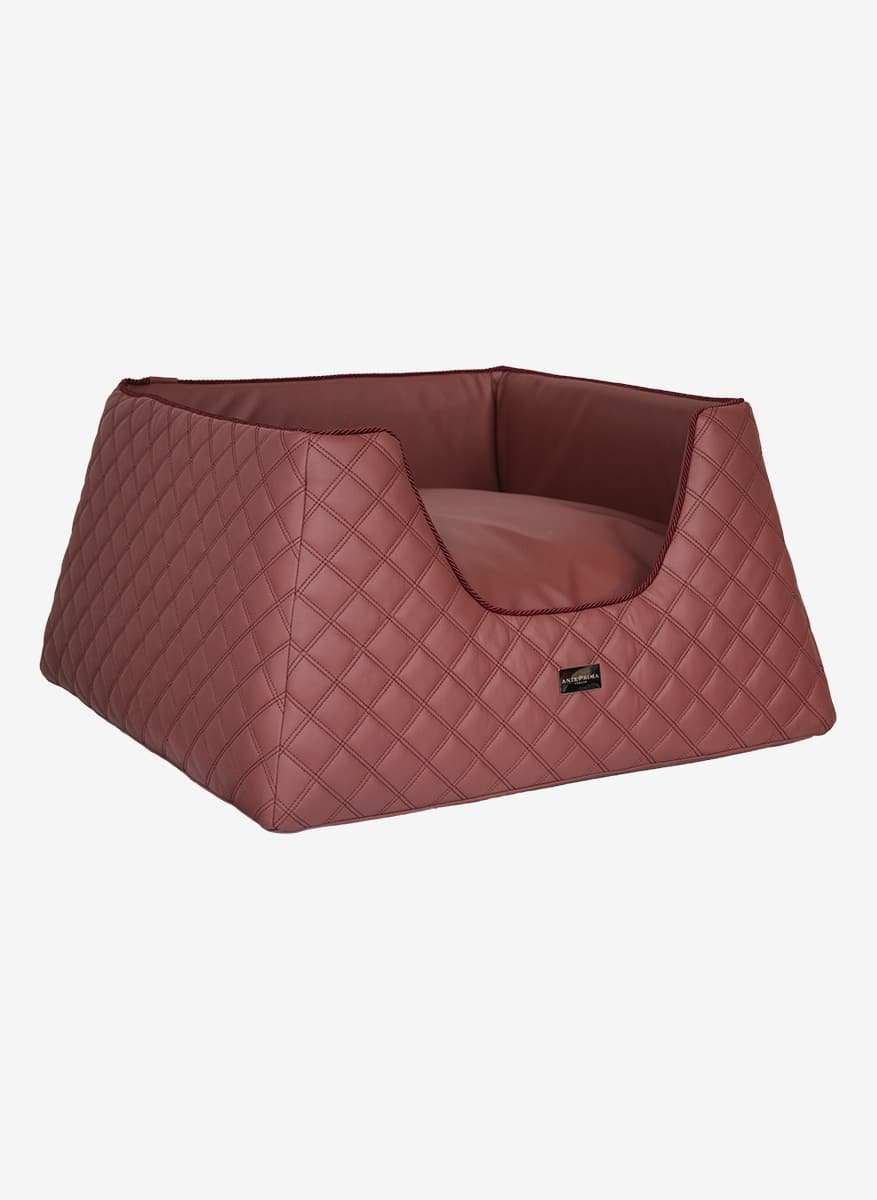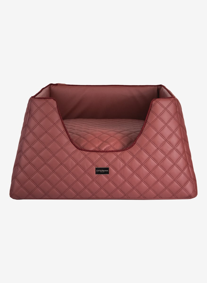 This faux leather dog bed showcases the finest eco leather with a diamond quilted pattern, ensuring both elegance and structural integrity. Its careful selection reflects not only value but also durability, offering enduring comfort for your cherished companion. Crafted with meticulous attention to detail, this bed represents more than just a functional accessory; it embodies a commitment to luxury and sophistication. Adorned with the prestigious « AntePrima » label, each piece is a testament to Italian craftsmanship, imbued with a sense of authenticity and tradition. Beyond its aesthetic appeal, this bed prioritizes practicality, boasting a removable cover for easy maintenance. The interior, luxuriously lined with 100% cotton, ensures a cozy and hygienic resting environment for your pet. This exquisite fabric, chosen for its purity and strength, guarantees both comfort and longevity. With its perfect fusion of luxury materials and thoughtful design, this luxury dog bed stands as an essential element for discerning pet owners seeking the utmost in quality and sophistication for their furry companions, without compromising on convenience or style in their living space.