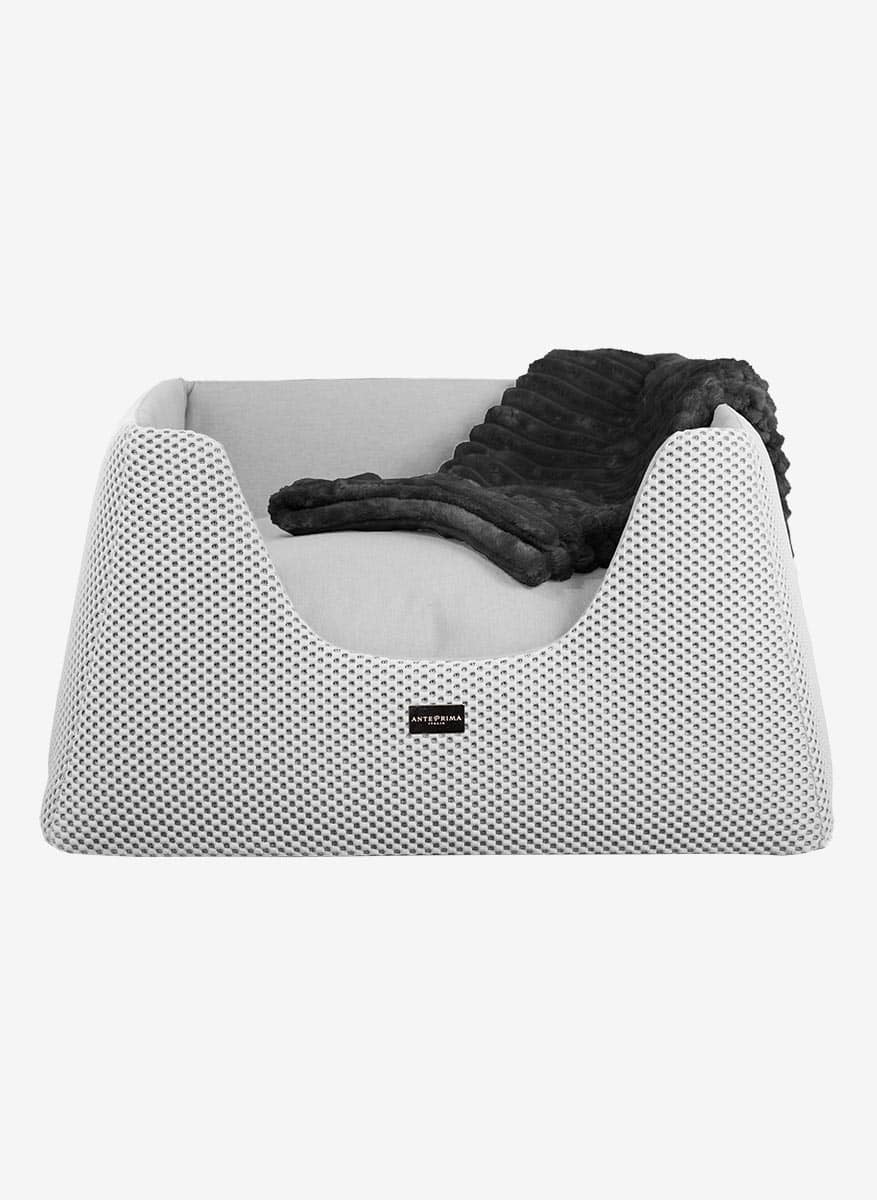 Meet the Como Premium Dog Bed. This dog bed embodies the excellence of elegance and comfort for your beloved pet. Its pyramid design, with finely crafted edges and a front opening, offers a cozy and secure space for your faithful companion to rest and relax. The outer fabric is made of high-quality, hydro-repellent polyester with micro-holes supported by a sturdy base, providing durability and breathability. Meanwhile, the interior is woven from 100% recycled material sourced from bottles, ensuring both quality and sustainability. Inside the box, you’ll also find a luxurious Blanket handcrafted with high-quality faux fur, meticulously designed to complement the bed.