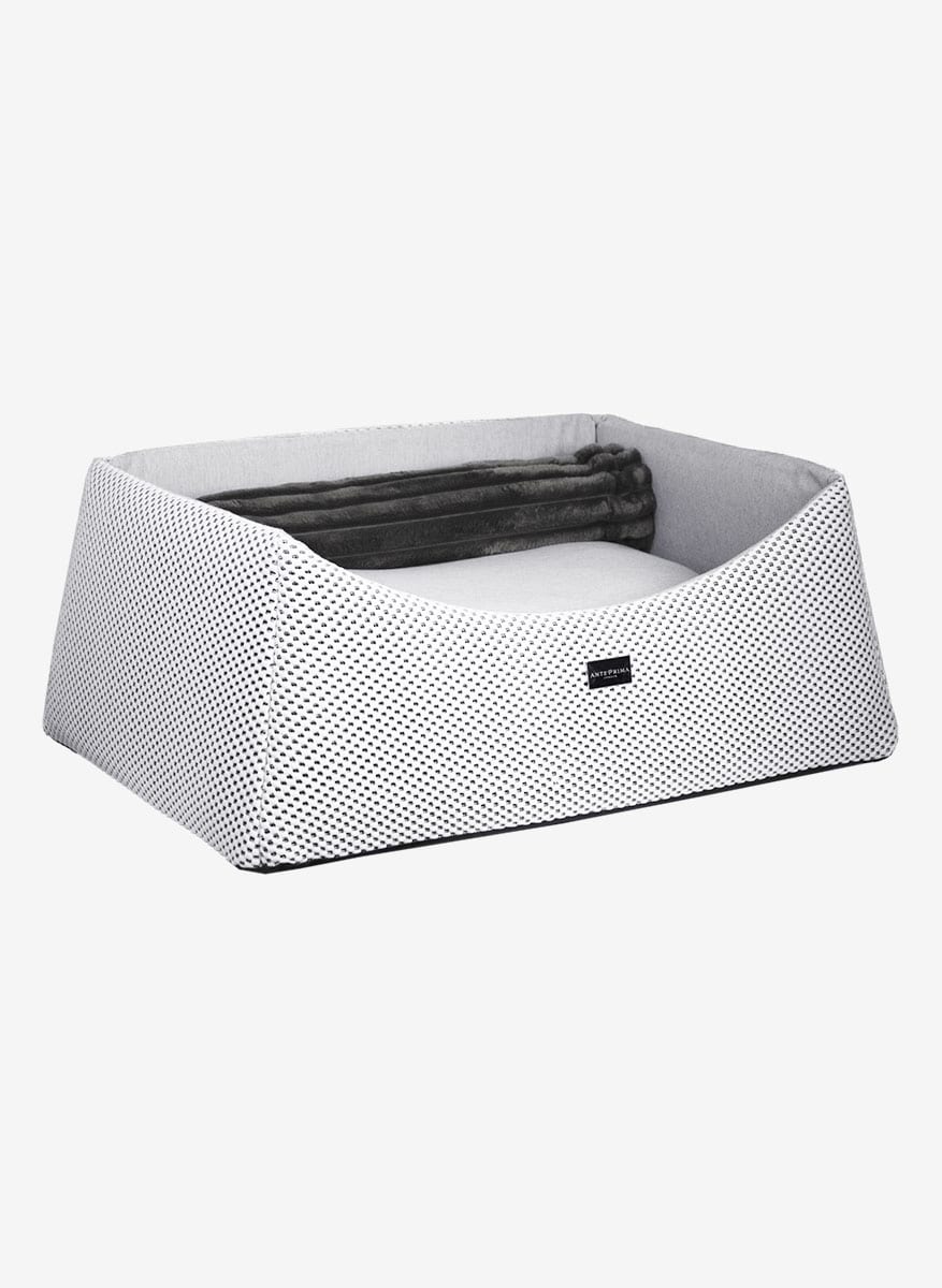 Introducing the luxury dog bed Milano, crafted with an emphasis on softness and durability. The high-quality fabric offers a long-lasting resistance, making it ideal for everyday use. The pastel hue brings a soft, serene elegance to your space, blending effortlessly with both modern and classic interiors. Designed for both comfort and practicality, the bed features a removable cover for easy cleaning and maintenance, keeping your petโs resting environment fresh and inviting. The interior is lined with breathable 100% cotton, promoting a healthy, cozy place for your pet to relax. Adorned with the signature metal “AntePrima” label at the front, the luxury dog bed Milano represents Italian craftsmanship and exclusivity. Each bed is crafted with care, offering unique variations that reflect the artisanal process. Perfect for those seeking a luxurious yet functional pet bed, the Milano Dog Bed merges elegance, comfort, and durability, ensuring your beloved companion enjoys both style and softness in their everyday rest.
