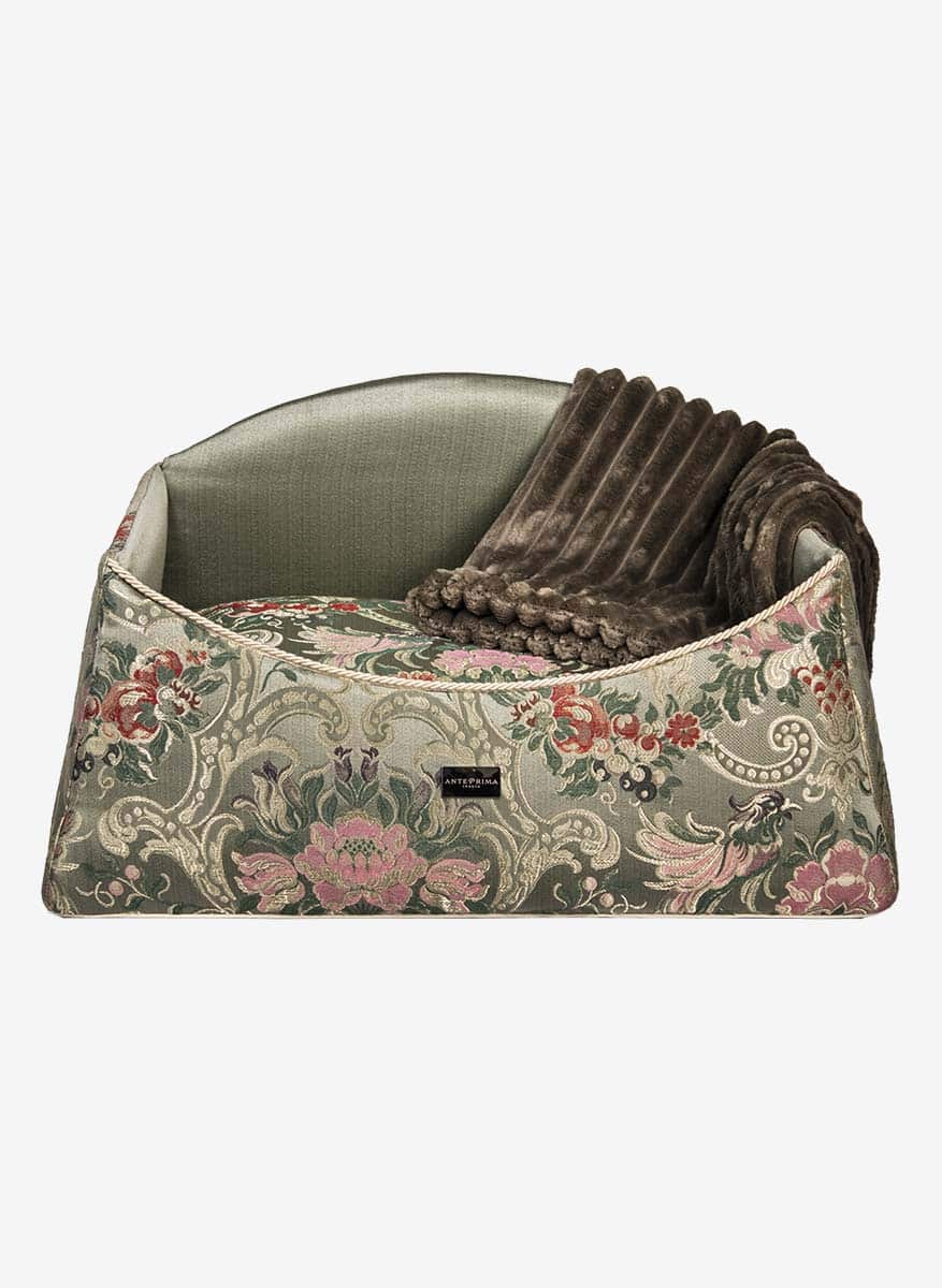 The luxury dog bed Siena is a testament to timeless elegance and durability. Crafted with meticulous attention to detail, every aspect of this bed, from the selection of hypoallergenic materials to the precision of craftsmanship, ensures a superior luxury experience for your beloved pet. The distinguished metal โAntePrimaโ label proudly positioned at the front serves as a symbol of authenticity and quality, reflecting the Italian origin and artisanal excellence that characterize each individual bed. Beyond being a simple pet accessory, this bed is a true furnishing complement, seamlessly integrating into your prestigious home environment and adding a touch of individuality with its unique variations resulting from artisanal craftsmanship. By offering this bed to your loyal friend, youโre not just providing them with a place to rest; youโre gifting them an authentic symbol of love and care, perfectly aligned with your refined lifestyle. Every meticulous detail of this bed, including its complete removable cover for easy maintenance, contributes to its functionality and aesthetic appeal. The interior of the damask dog bed, meticulously lined with 100% cotton, offers a fresh and healthy resting environment, enveloping your pet in a comforting embrace of softness and comfort.