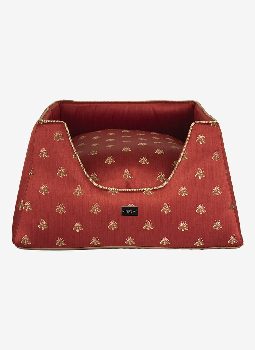 The luxury dog bed Venezia is a testament to timeless elegance and durability. Crafted with meticulous attention to detail, every aspect of this bed, from the selection of hypoallergenic materials to the precision of craftsmanship, ensures a superior luxury experience for your beloved pet. The distinguished metal “AntePrima” label proudly positioned at the front serves as a symbol of authenticity and quality, reflecting the Italian origin and artisanal excellence that characterize each individual bed. Beyond being a simple pet accessory, this bed is a true furnishing complement, seamlessly integrating into your prestigious home environment and adding a touch of individuality with its unique variations resulting from artisanal craftsmanship. By offering this bed to your loyal friend, you’re not just providing them with a place to rest; you’re gifting them an authentic symbol of love and care, perfectly aligned with your refined lifestyle. Every meticulous detail of this bed, including its complete removable cover for easy maintenance, contributes to its functionality and aesthetic appeal. The interior of the damask dog bed, meticulously lined with 100% cotton, offers a fresh and healthy resting environment, enveloping your pet in a comforting embrace of softness and comfort.