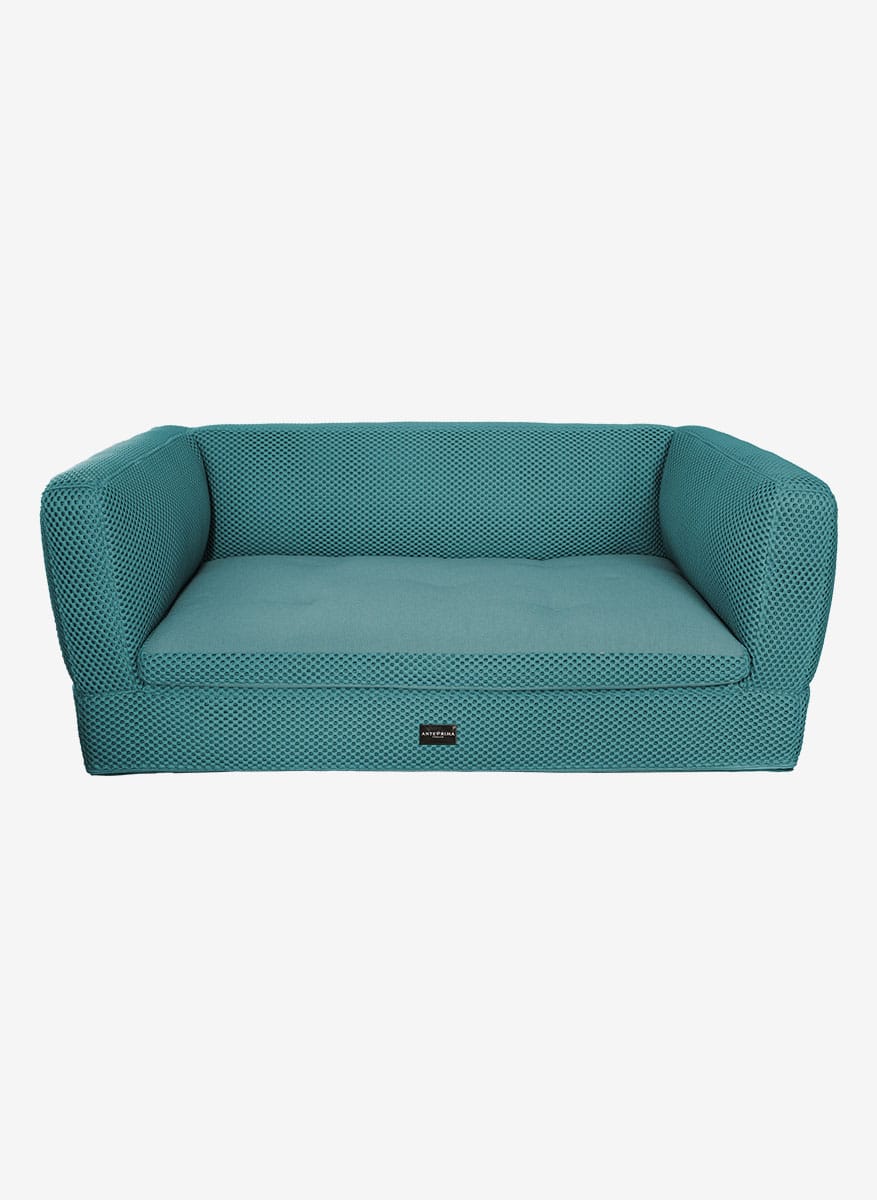 The Luxury Dog Sofa Torino boasts a construction of high-quality, hydro-repellent polyester, complete with micro-holes and a sturdy base, ensuring durability and breathability. The cushion fabric is made of 100% recycled materials sourced from bottles provide both quality and sustainability. Adorned with the metal “AntePrima” label at the front, it signifies authenticity and Italian artisanal excellence. Each sofa is a unique work of art, imbued with artisanal craftsmanship and bearing unique variations that add exclusivity. This luxury dog couch is a symbol of refinement and care for your pet’s well-being, offering both comfort and beauty. Every detail merges aesthetics with practicality, including its complete removable cover, which simplifies cleaning and maintenance, ensuring hygiene and longevity. The interior, lined with 100% cotton, offers a fresh, healthy resting environment. Cotton, known for its breathable and hypoallergenic properties, guarantees a superior relaxation experience for your faithful friend while maintaining freshness and cleanliness. The premium fabric ensures both elegance and durability, making this dog sofa an essential element for discerning pet owners who seek the best for their pets without compromising on style.